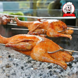 Ướp thấm đều gia vị truyền thống, sau đó quay đều tay trên bếp than cho đến khi lớp da vàng óng, giòn nhẹ, thịt bên trong mềm ngọt, mọng nước.